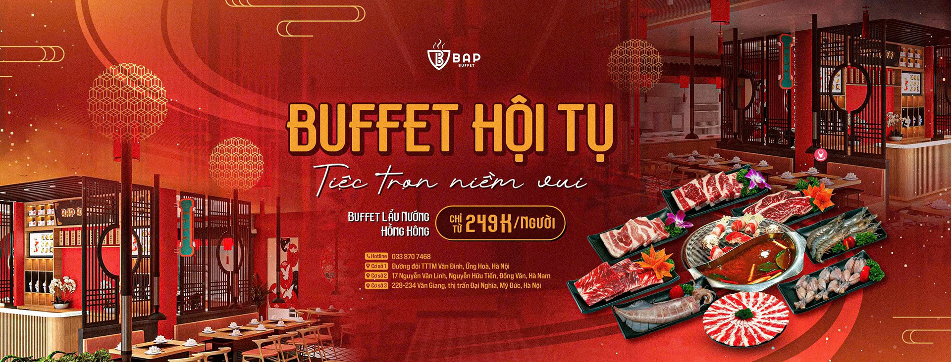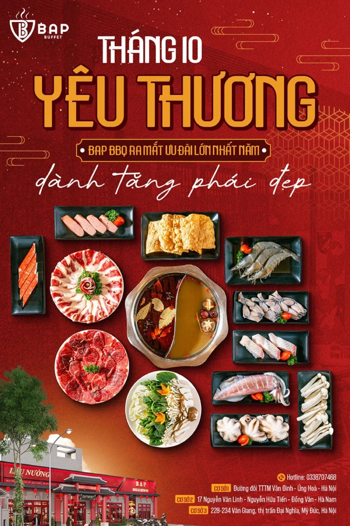 Đặt bàn tại BAP BBQ để tận hưởng bữa tiệc lẩu nướng Hong Kong chuẩn vị, thịt bò thượng hạng, hải sản tươi ngon và không gian ấm cúng, sang trọng. Phù hợp cho liên hoan, sinh nhật, họp mặt bạn bè hay tiệc công ty. Đặt bàn để giữ chỗ đẹp và nhận ưu đãi hấp dẫn trong tháng này!